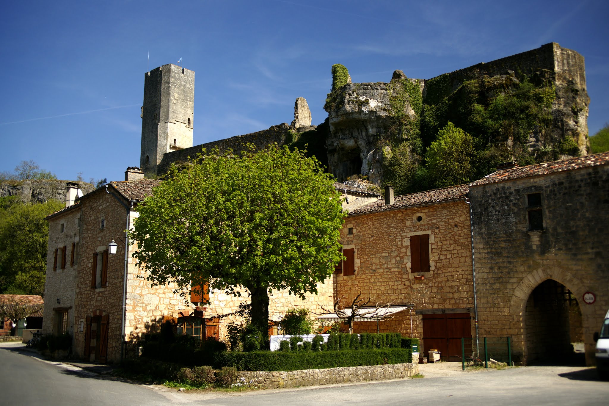 Un forteresse impressionnante. Dominant le petit village, cet impressionnant ensemble médiéval est juché sur un éperon rocheux dont les murailles épousent les contours. L'escalier d'accés (le seul point de passage) est tout bonnement incroyable. Belle visite pour un monument un peu en dehors des sentiers habituels à proximité des sites d ela vallée de la Dordogne.