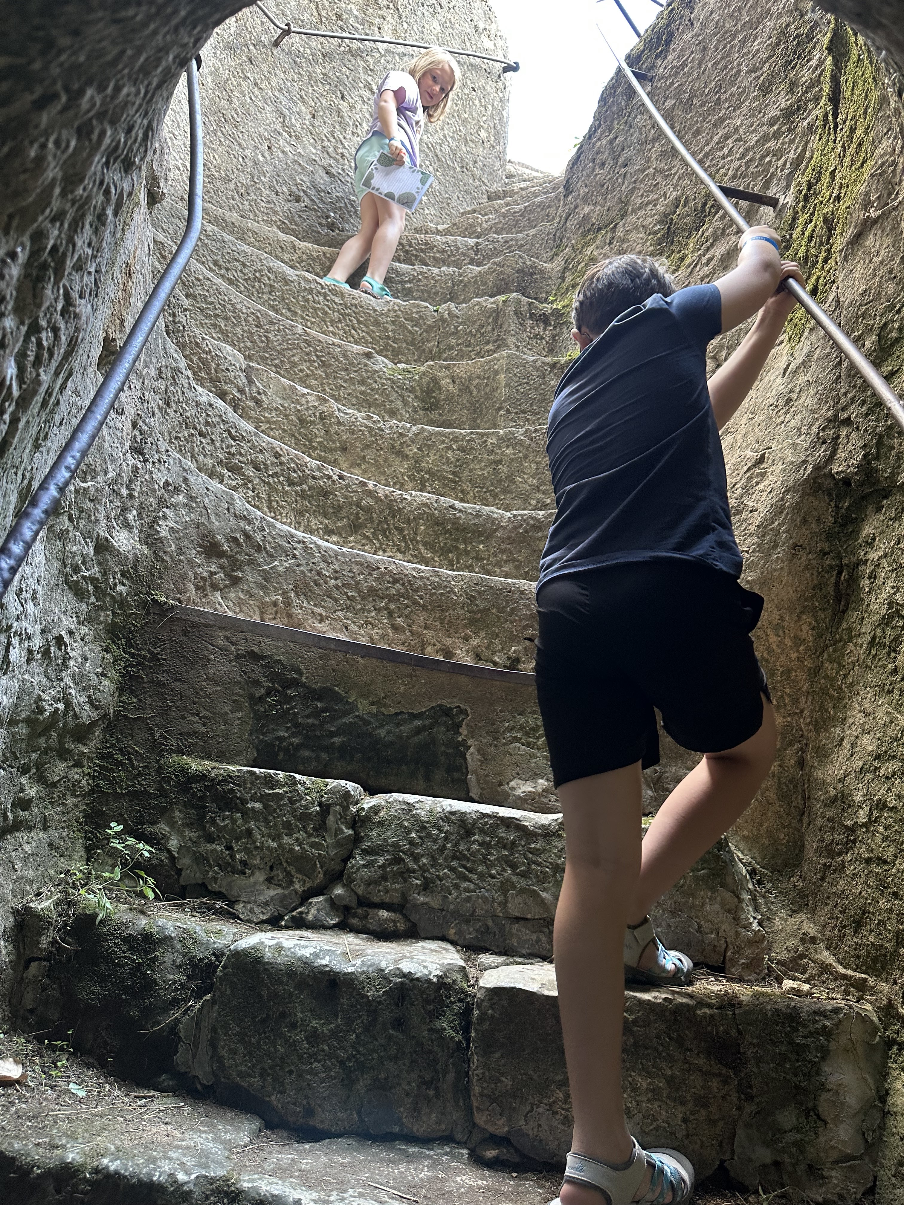 Vue magnifique lorsqu'on arrive enfin en haut du donjon. Chasse au trésor pour les enfants, et descente en rappel pour les plus grands.