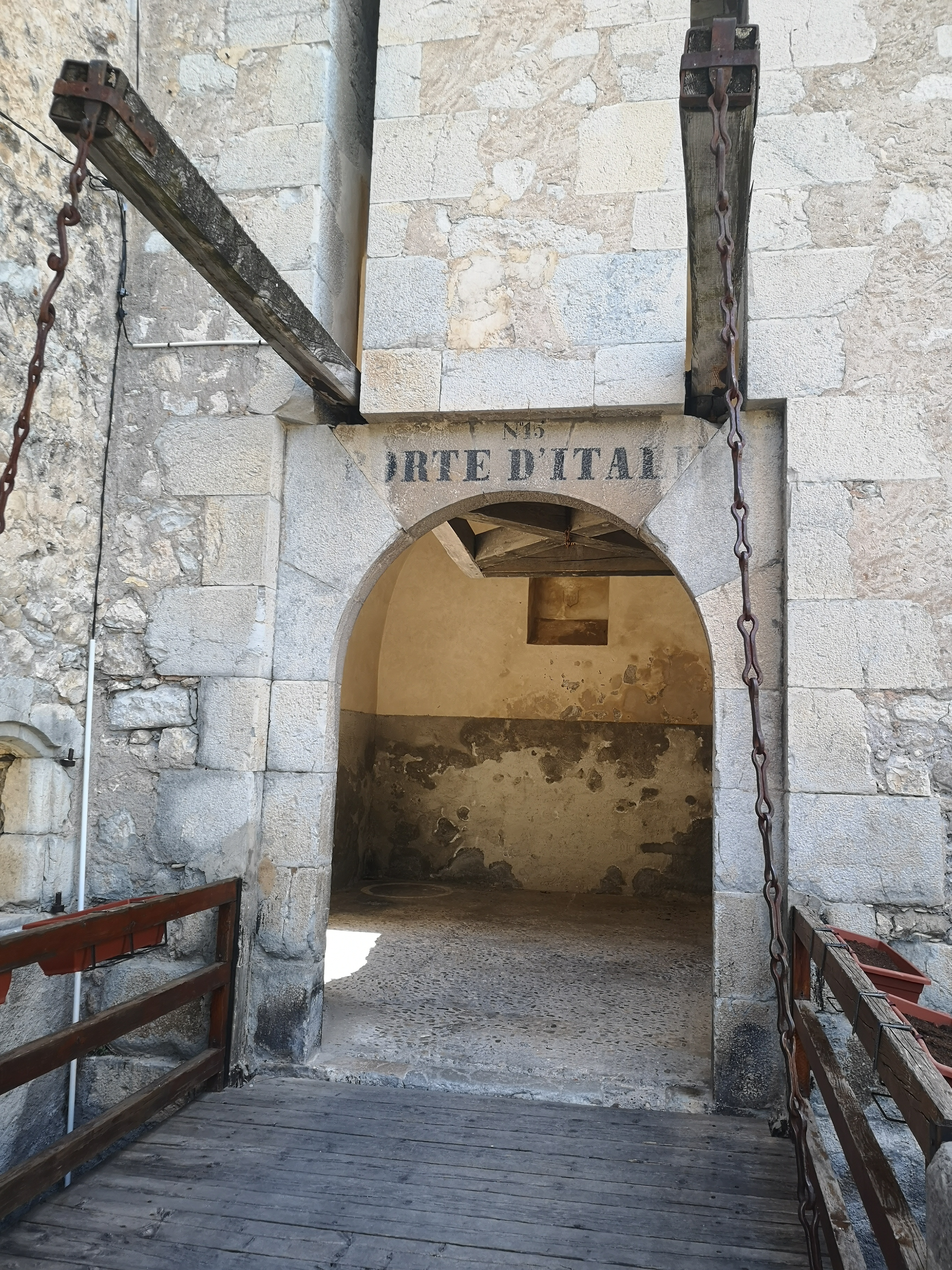 Entrée d'Entrevaux. Porte d'entrée magnifiquement conservée avec pont et pont-levis