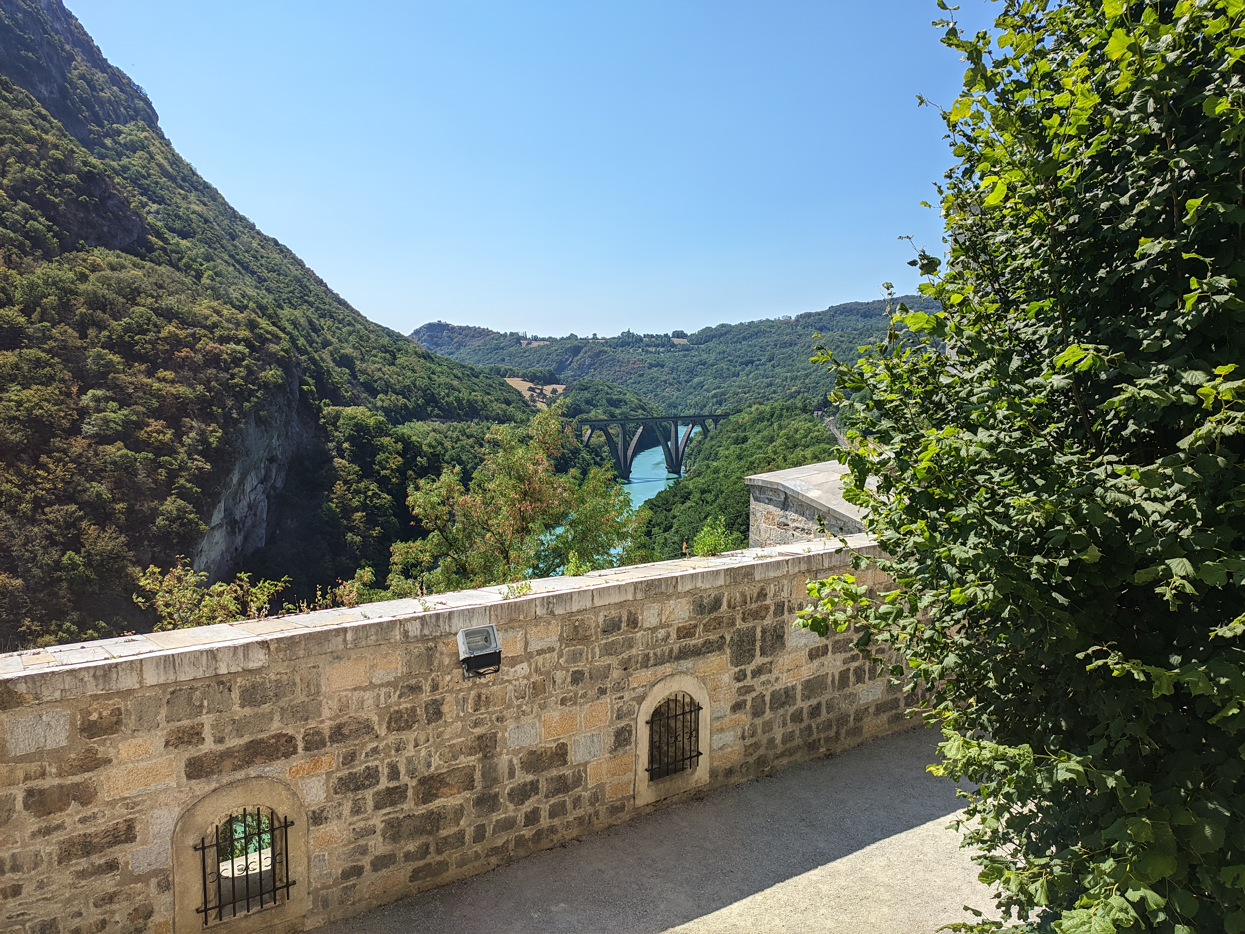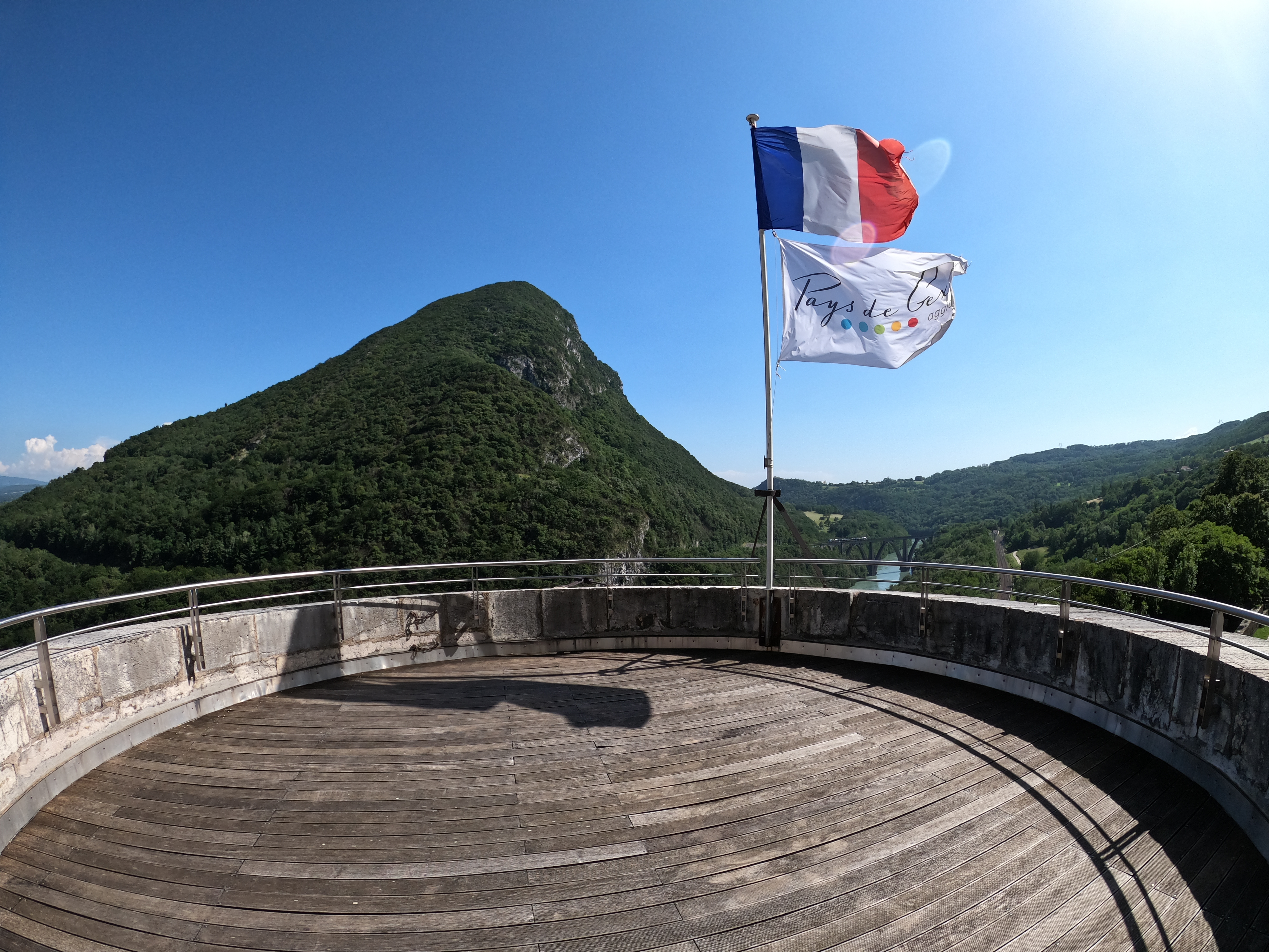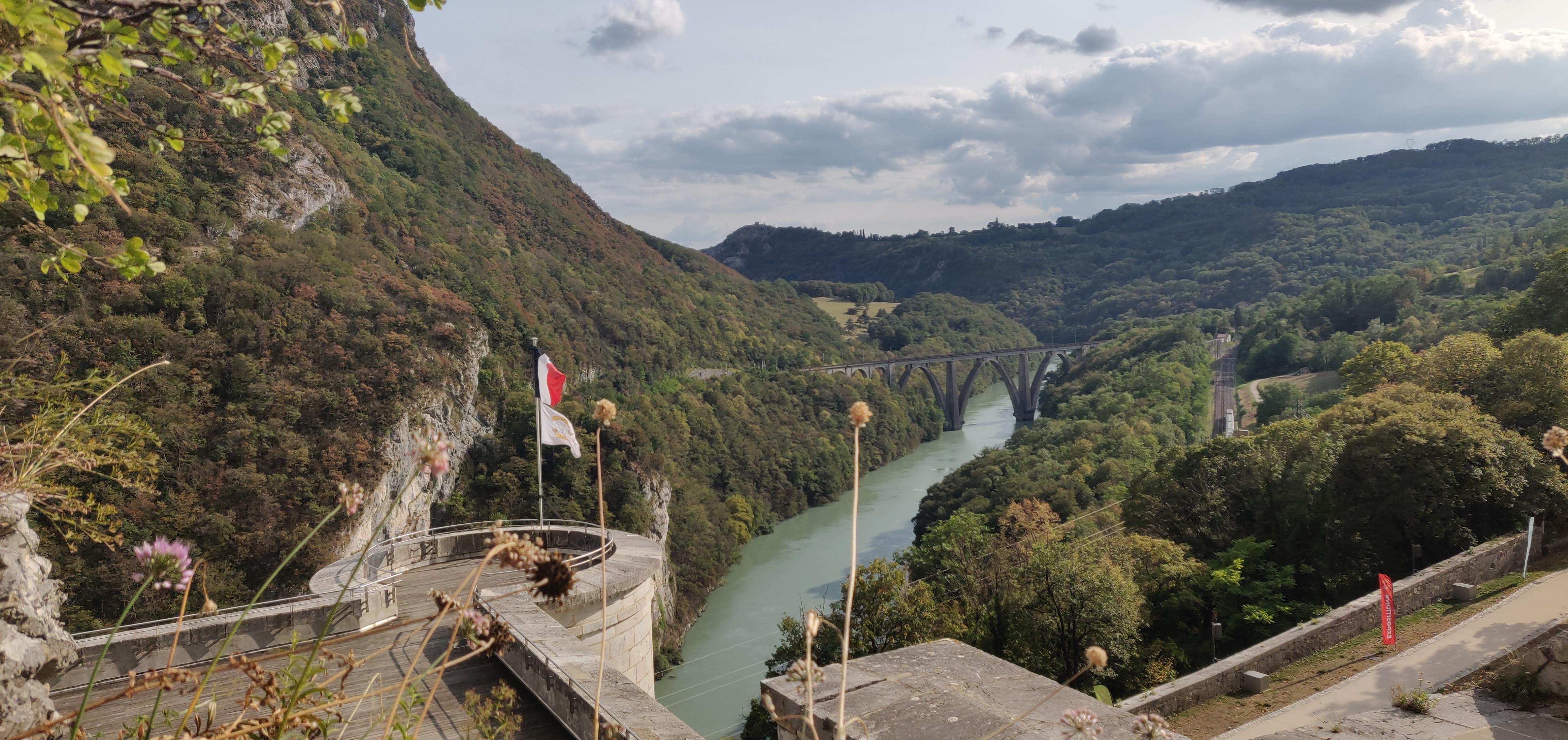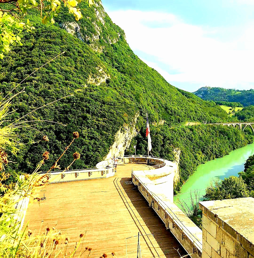 Lieu que je ne voulais pas faire malgré les photos mises ici. mais en fait je n ai pas regretté du tout. Le paysage était magnifique même sur la route c est très beau. Et nous avons été sur le belvédère de Léaz. Super joli. Nous n'étions pas courageux pour gravir les marches.