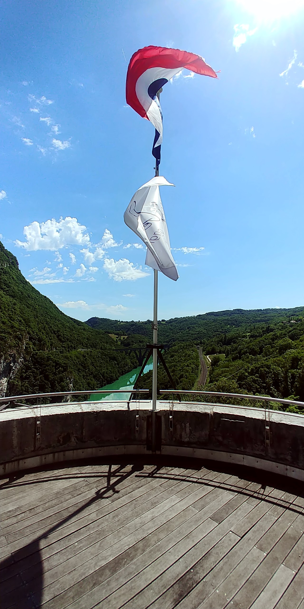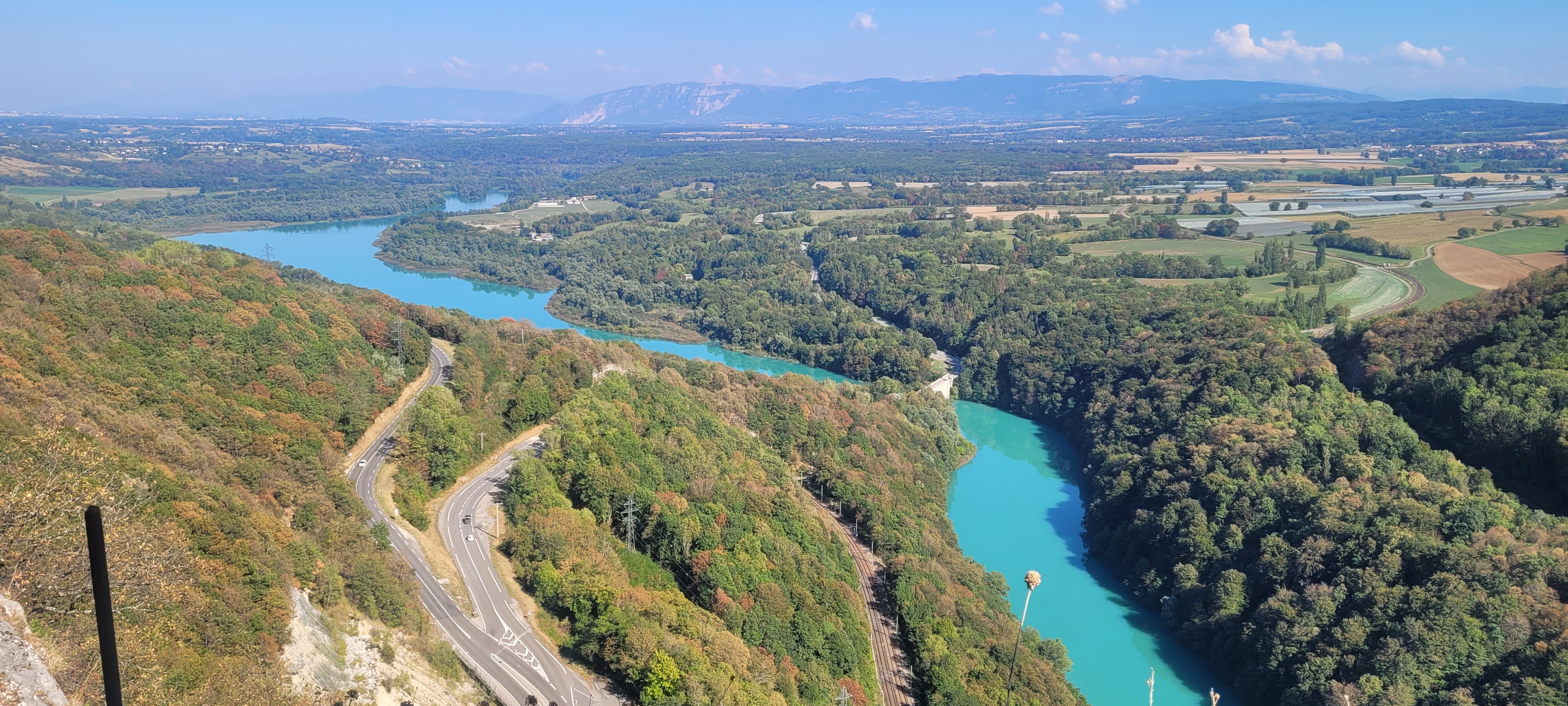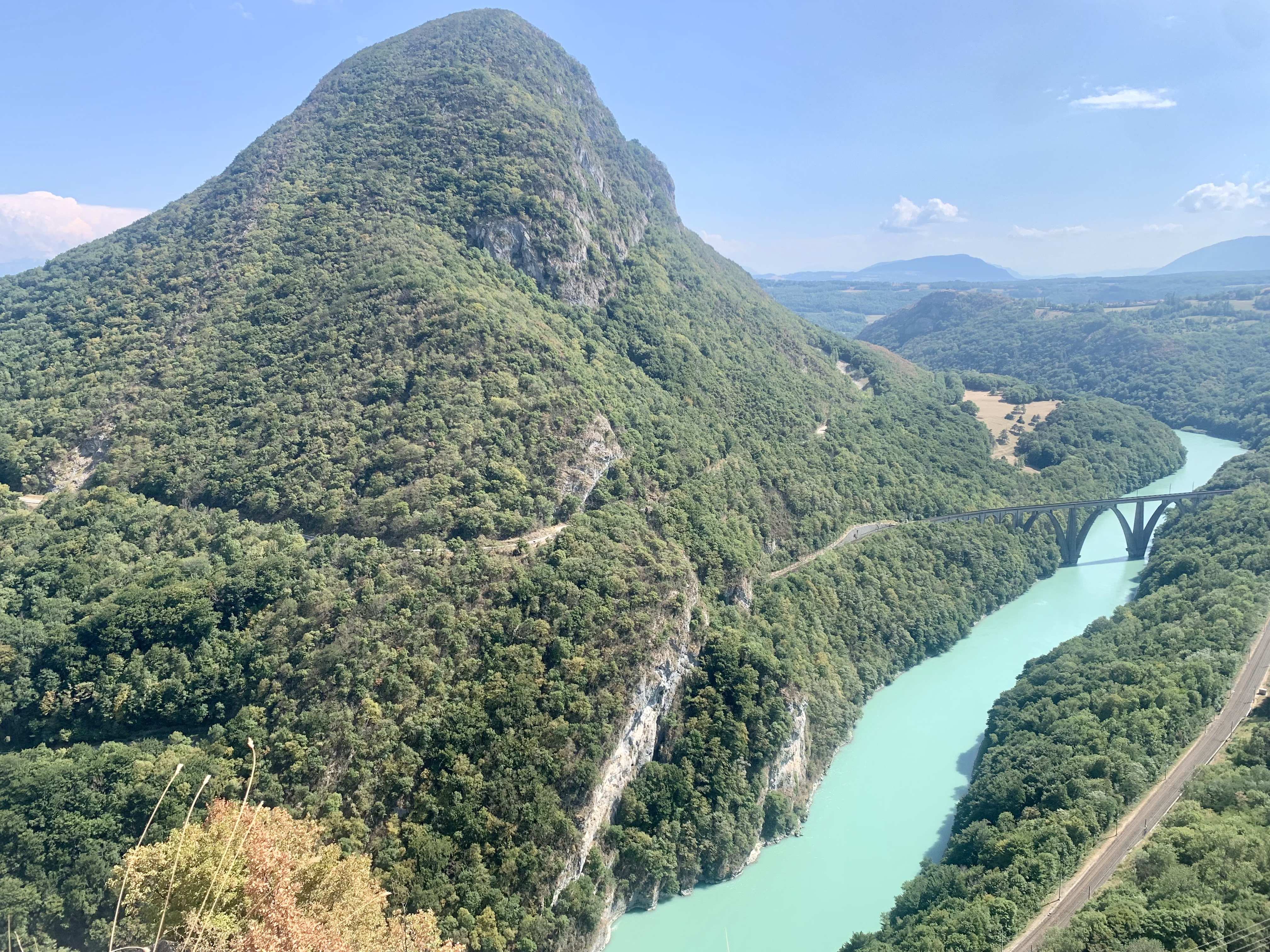 Lieu que je ne voulais pas faire malgré les photos mises ici. mais en fait je n ai pas regretté du tout. Le paysage était magnifique même sur la route c est très beau. Et nous avons été sur le belvédère de Léaz. Super joli. Nous n'étions pas courageux pour gravir les marches.