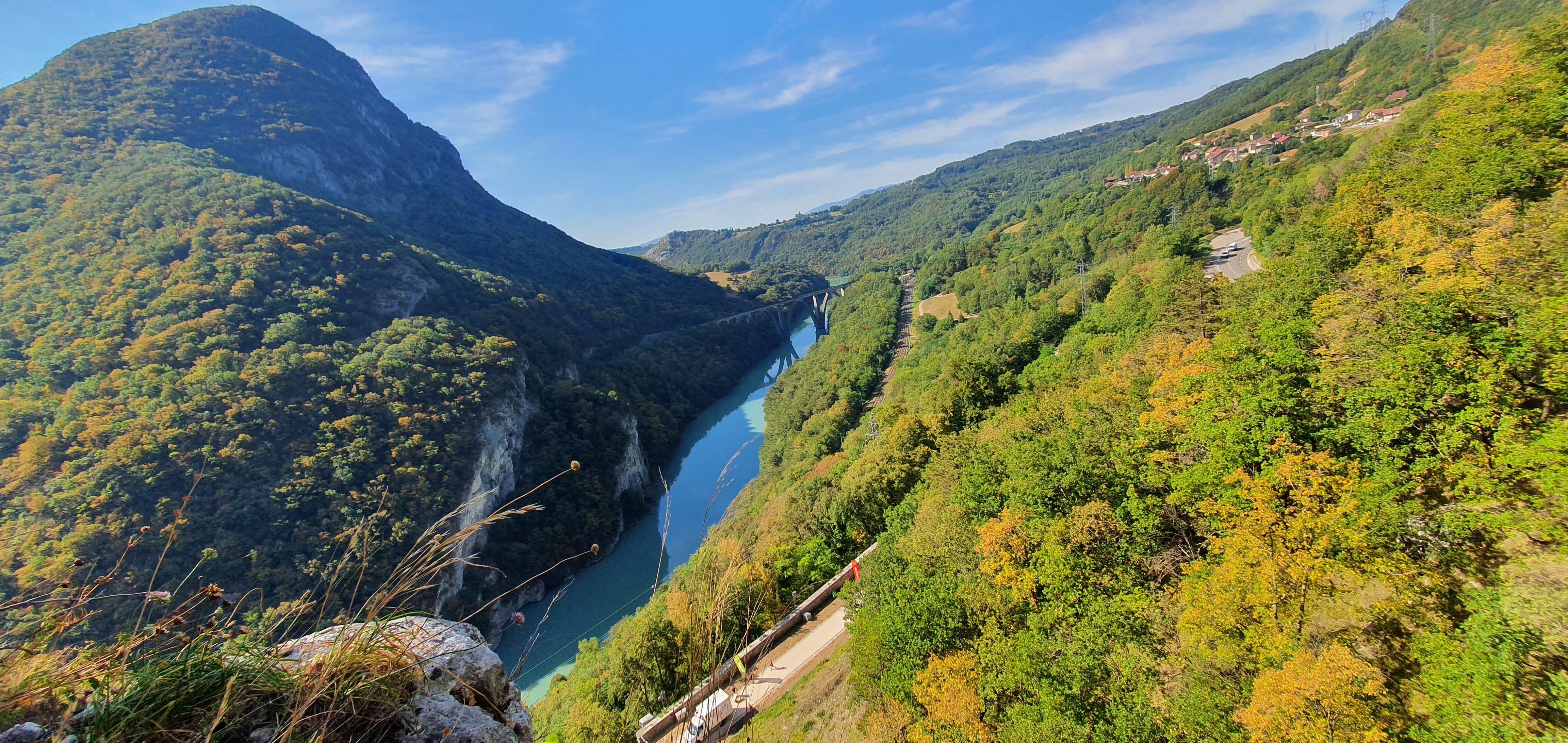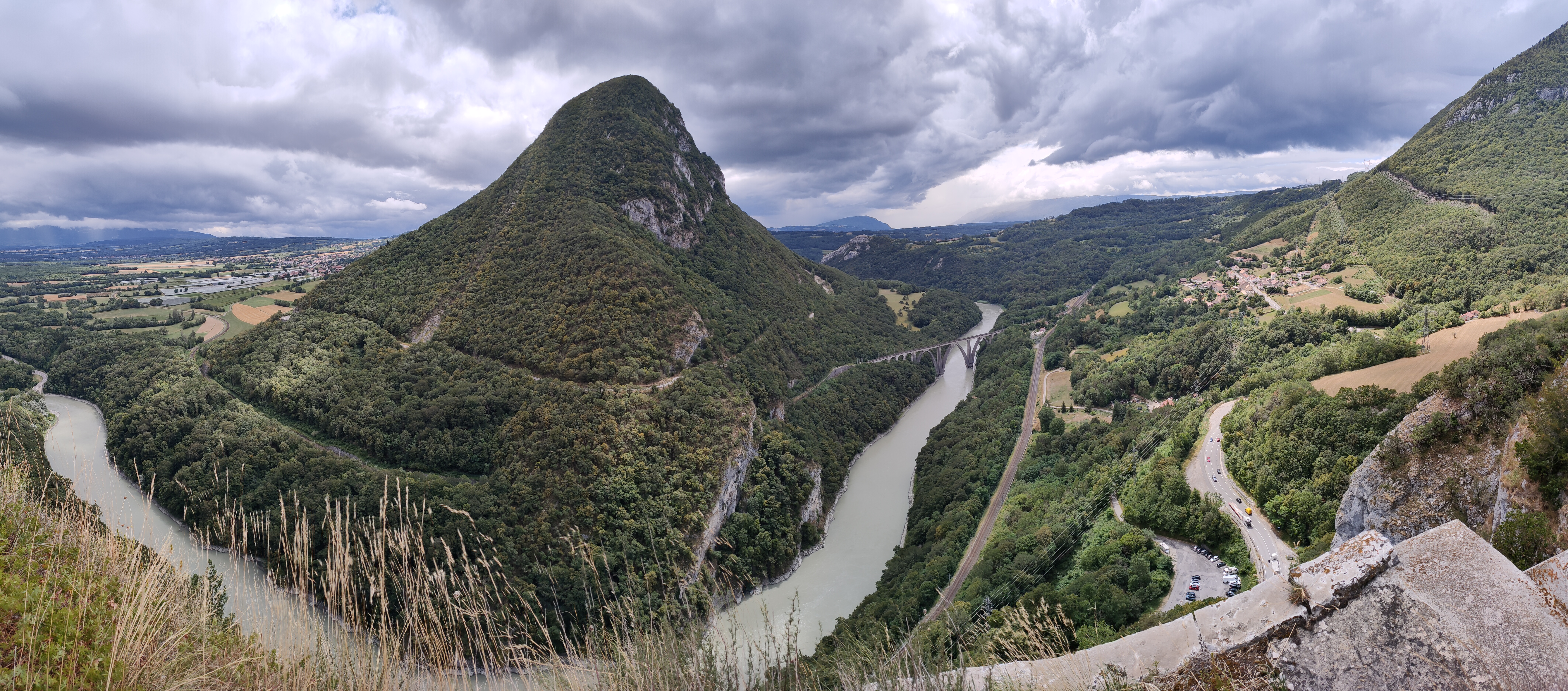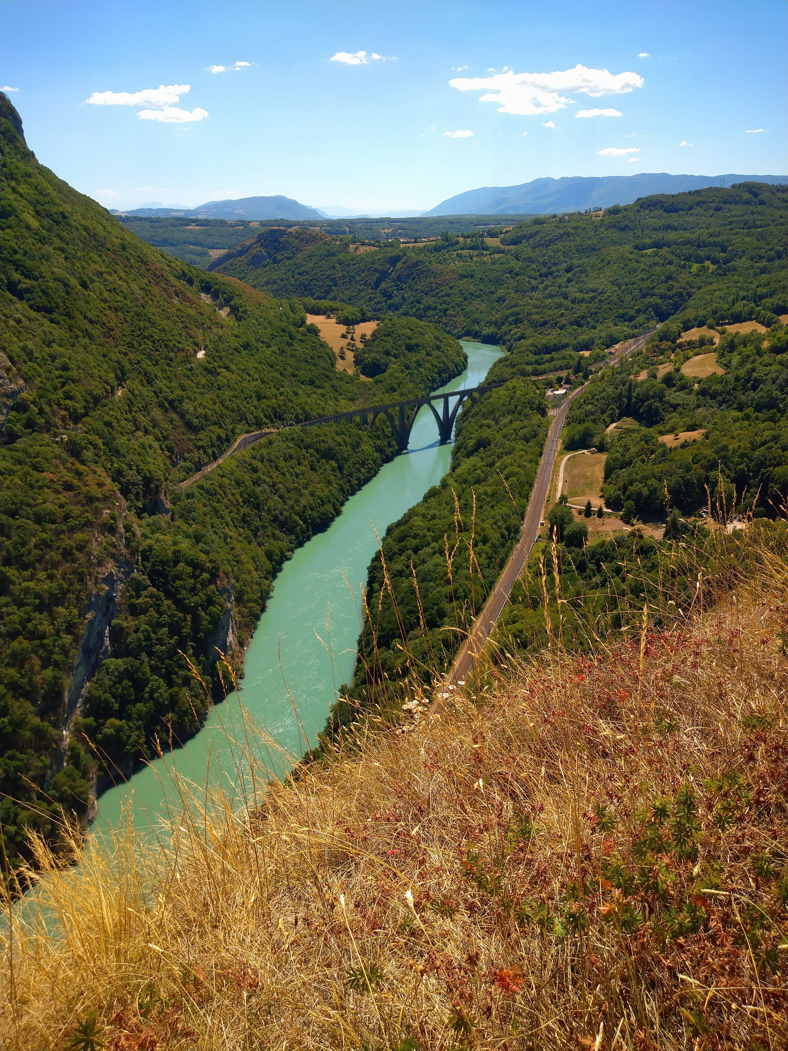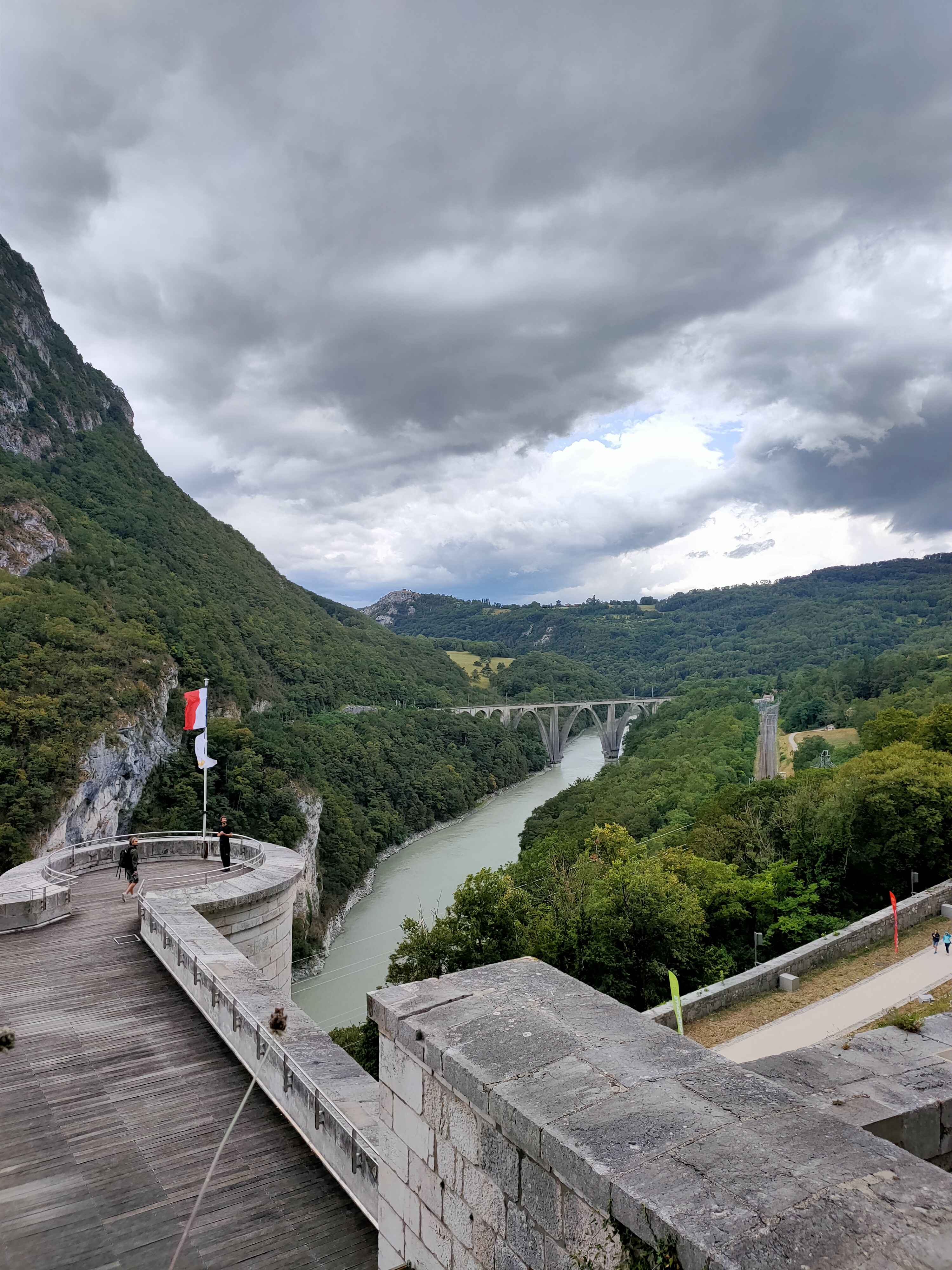 Lieu que je ne voulais pas faire malgré les photos mises ici. mais en fait je n ai pas regretté du tout. Le paysage était magnifique même sur la route c est très beau. Et nous avons été sur le belvédère de Léaz. Super joli. Nous n'étions pas courageux pour gravir les marches.