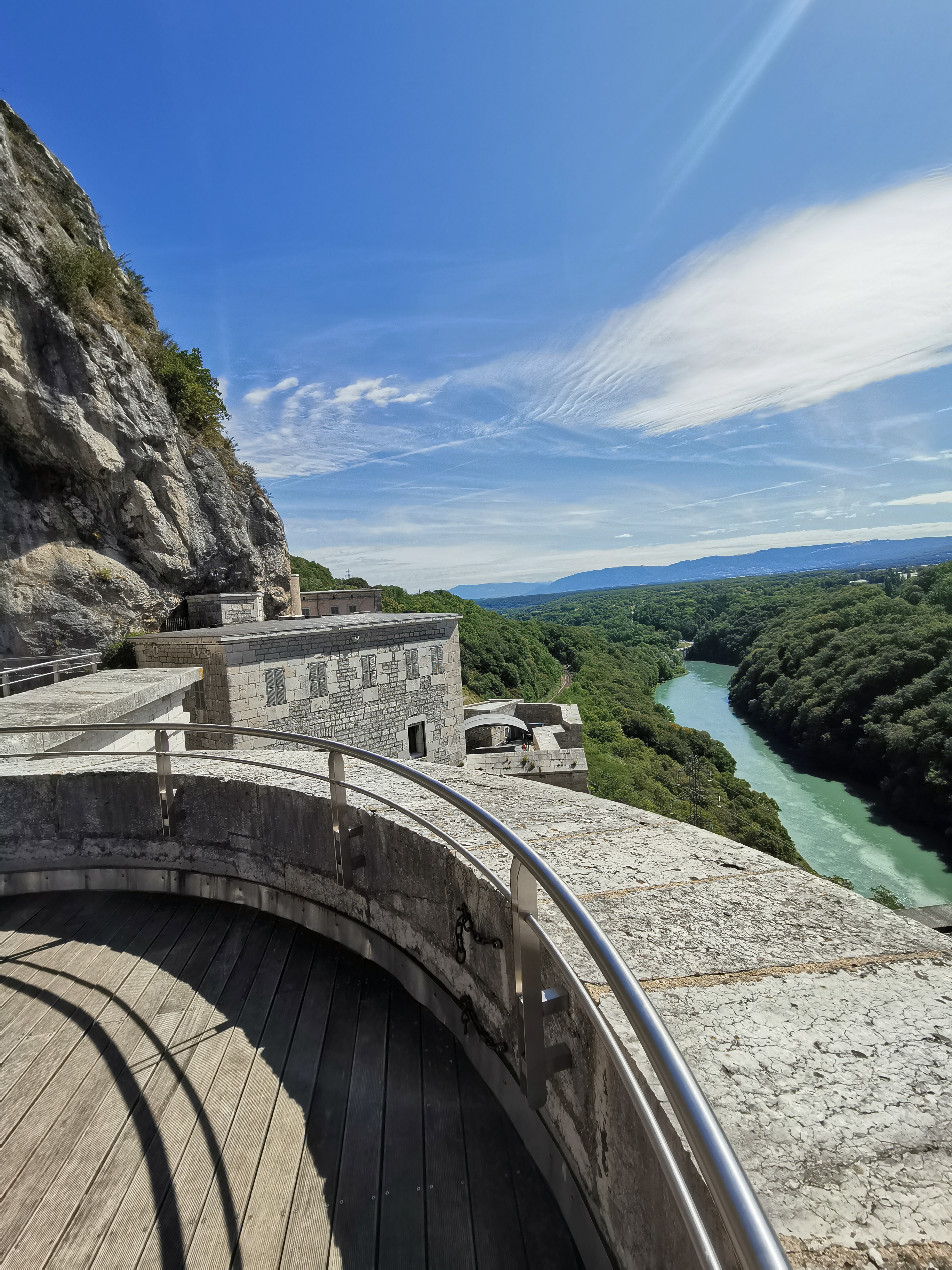 Vue magnifique sur le Rhône. Des animations ponctuelles, programme à surveiller. Accrobranche et via ferata sur les parois du fort...avis aux amateurs