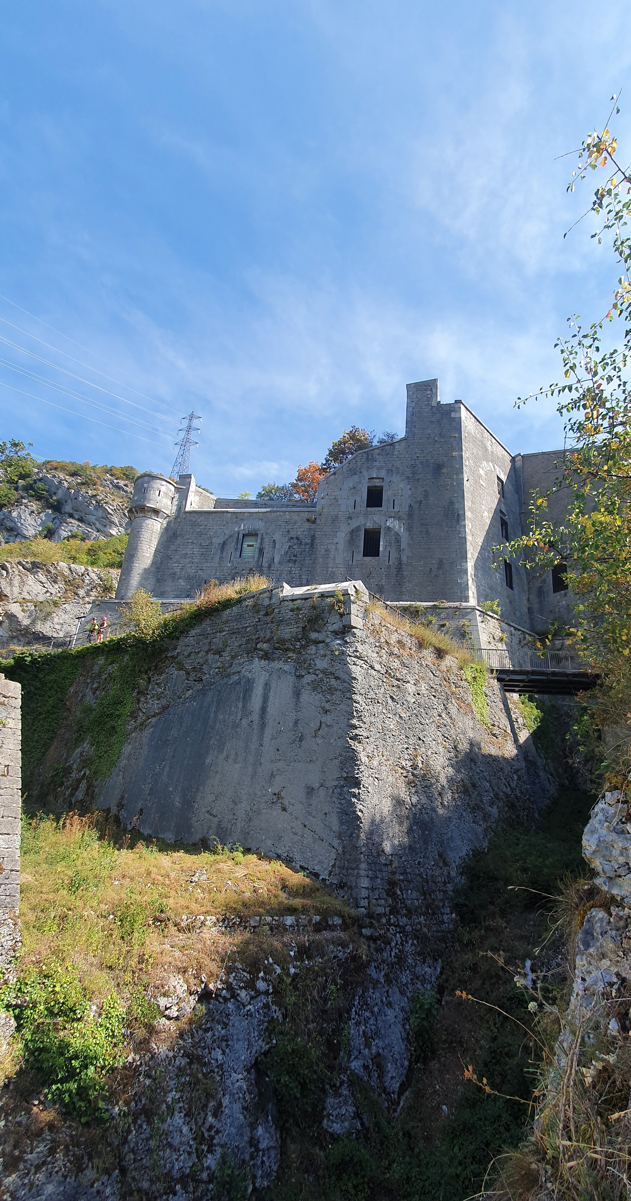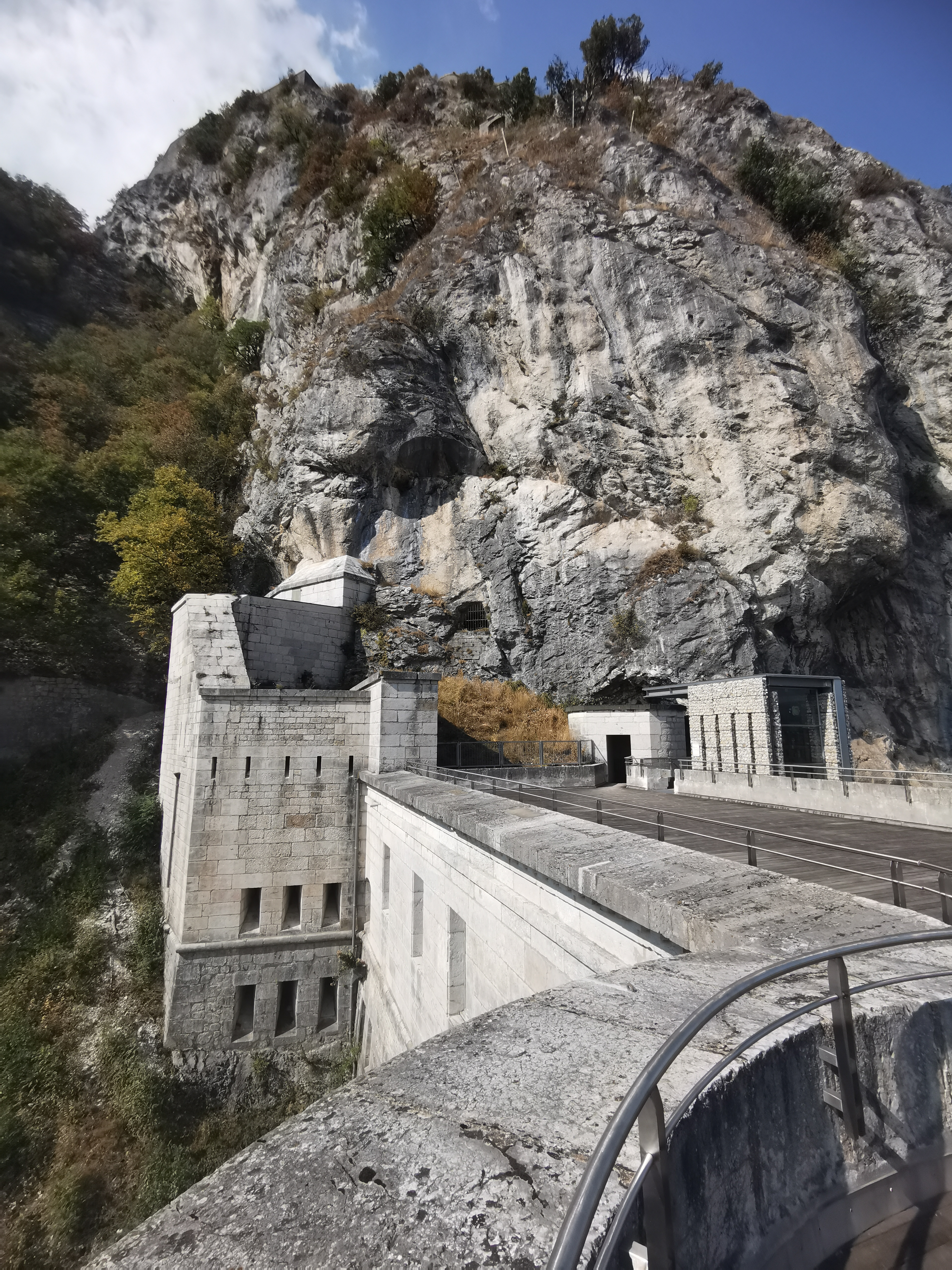 Magnifique lieux accessible a pieds depuis le belvédère, n a pas visité l interieur ni pratique la via ferrata mais a pied par le village, une belle balade en foret et la vue est prenante du fort supérieur, de n fort authentique et d architecture surréaliste