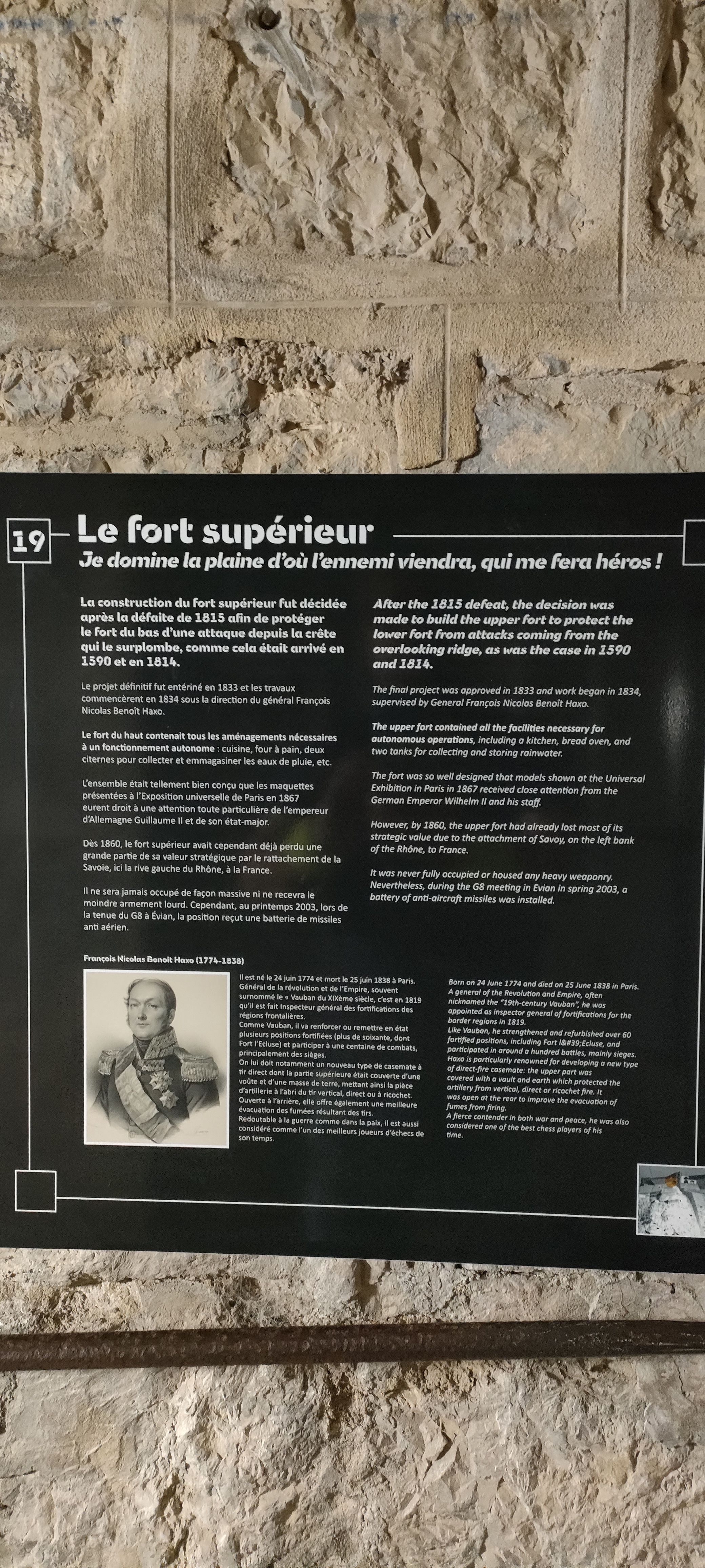 Hormis la porte et la vue rien d'intéressant. Une succession d'exposition qui ne mette pas en valeur la nature réel du fort. Tout en étant en inadéquation totale avec sa vocation. On ressent surtout le besoin de remplir les pièces vides.