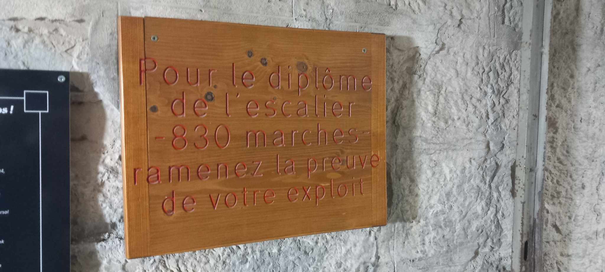 Ça vaut le coup d'y aller pour l'histoire du lieu, la beauté des panoramas et le challenge sportif des 830 marches, très accessible car il y a des paliers pour se reposer. Toutefois une fois en haut de la galerie souterraine, il n'y a rien, même pas un accès à l'extérieur, c'est donc assez décevant. Un grand merci aussi pour l'accueil très sympathique de la part de roue l'équipe.