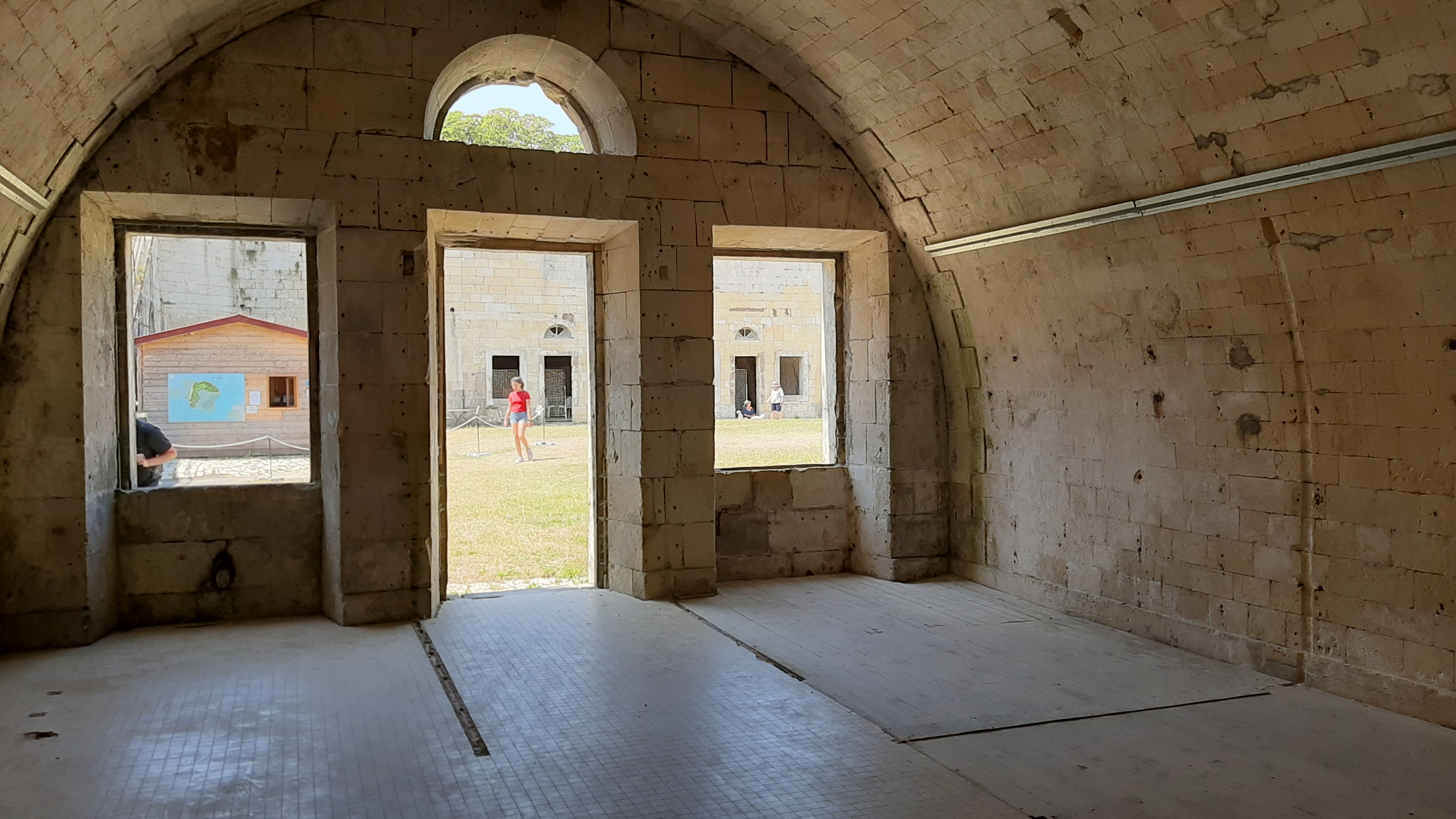 Si l'édifice est grand et porteur d'une époque, il est cependant victime d'une triste situation. Il est vide. Et tel est le soucis d'un bâtiment milliaire car si il est vide il ne reste plus que des salles se ressemblant toutes les unes des autres. Peu d'informations nous sont fournies de plus et il est assez désagréable de découvrir que la visite est occupée au moins pour le tiers par Fort Boyard et des jeux pour enfants .... Je suis au Fort Liédot pas à la course aux Boyard !