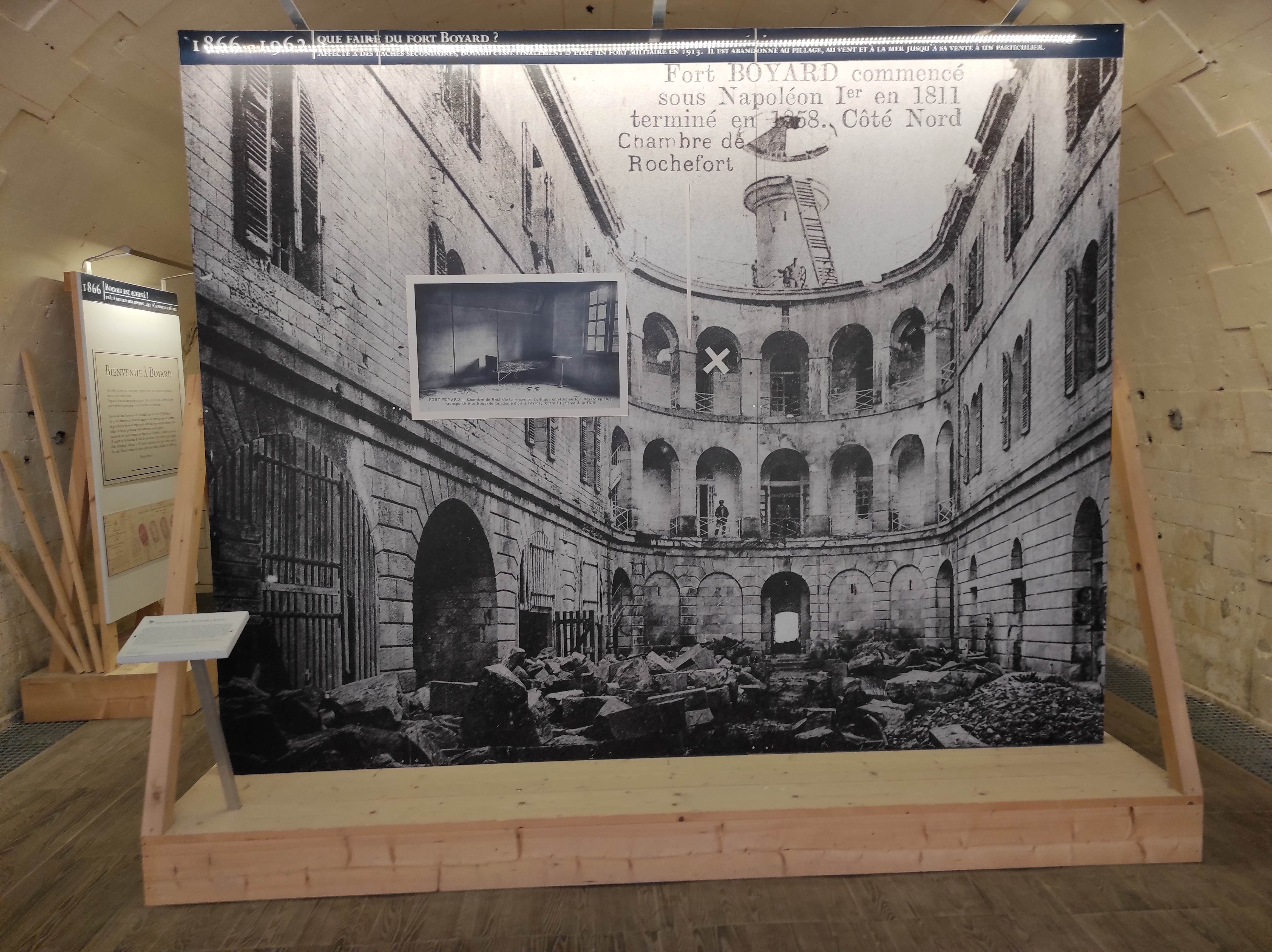 3 etoiles pour le fort et 1 de plus pour l Exposition sur fort boyard. 3 seulement car l edifice est superbe, malgres la moitié seulement ouverte (cela n est pas gênant). Ce que je regrette c est un peu plus dr panneau retraçant l histoire de ce fort. Piece vide malgre un depliant. Qui porquoi comment.... S il n y avait cette expo sur fort boyard.. Le fort en lui meme ne meriterai tout juste son prix d entree... Dommage car un edifice qui on le sens renferme plein de secret...