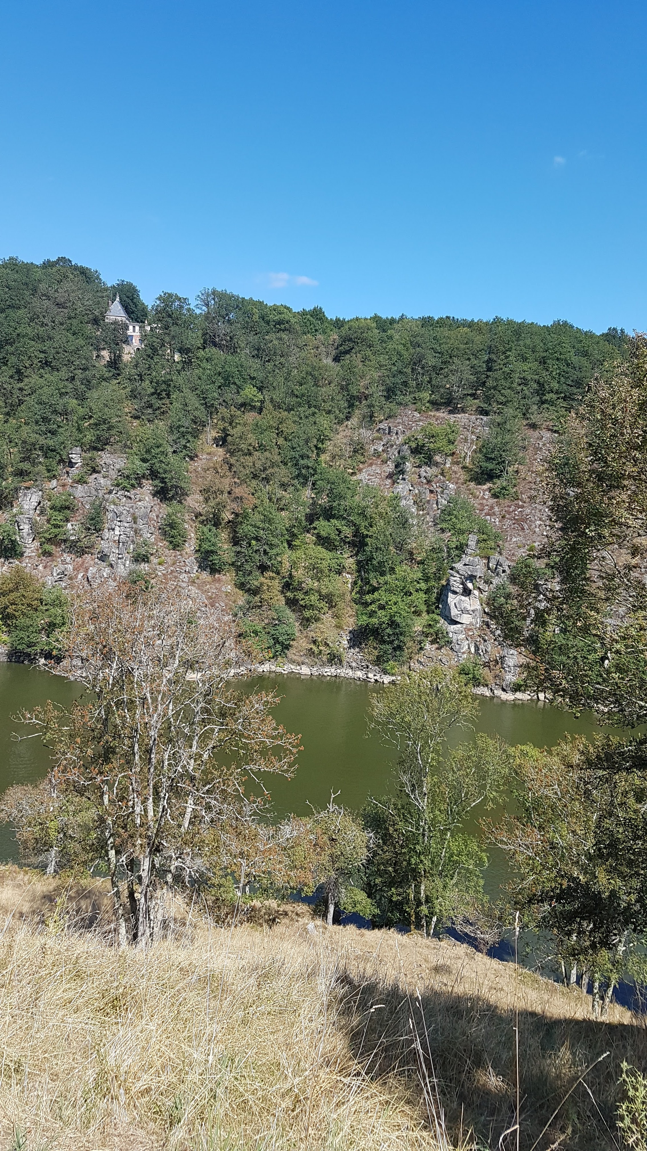 Dans un cadre superbe entre la creuse et la sédelle se dresse un éperon rocheux ou sont accroché les ruines du forteresse d'antan le lieu est magique entourée d'une forêt dense de blocs de rochers monumentaux de bruyères mauves et d'une eau sombre on peut y faire du bateaux promenade qui vous mènera jusqu'au lac de Chambon par cette sinueuse rivière ou l'on croise aussi des canoës que l'on peut louer pour découvrir ces gorges verdoyante