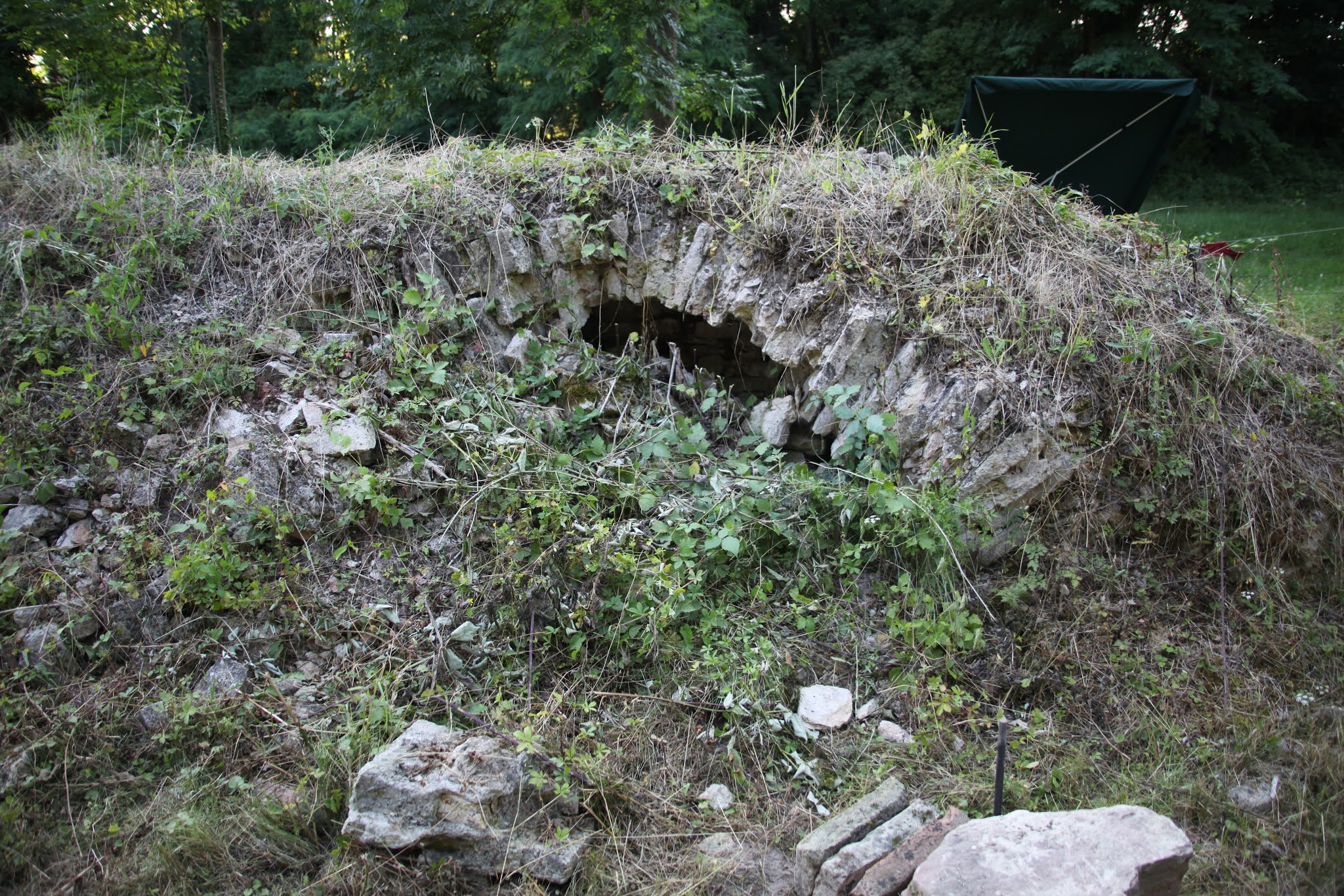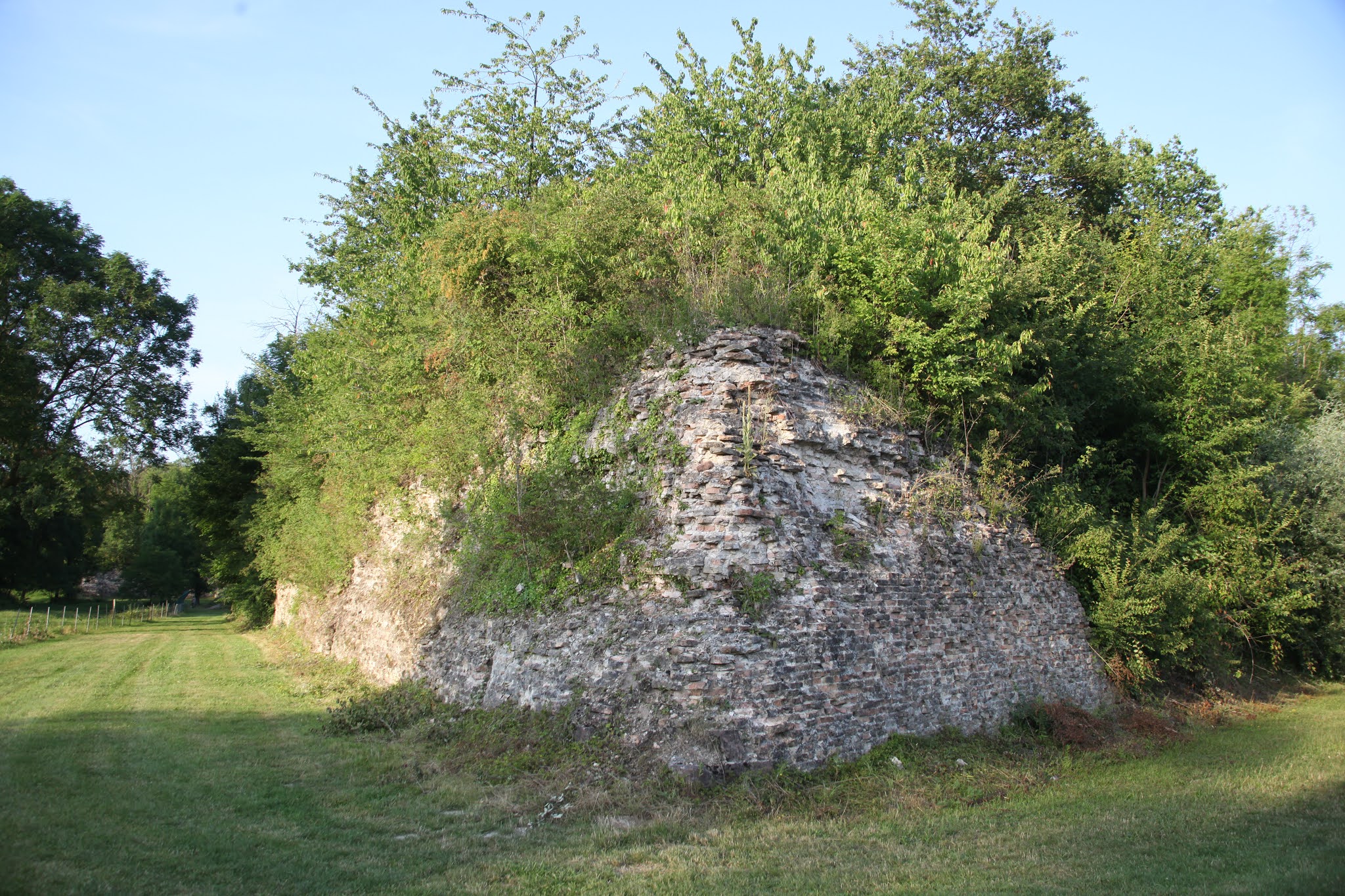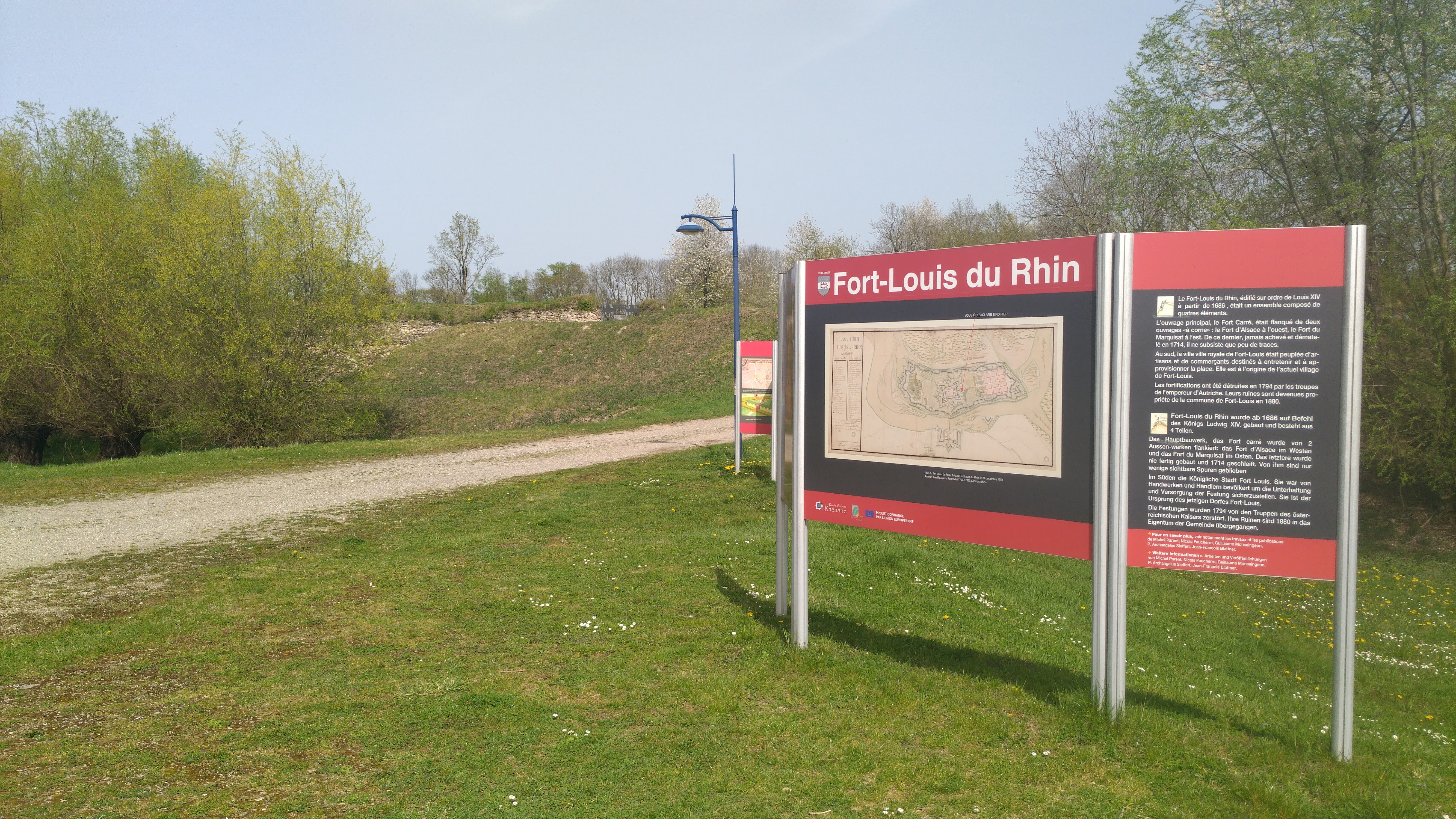 Avant d'entrer dans le village sur la gauche (grande air de repos, parking). Ce beau fort carré est en ruine. Il en reste les murs en partie et une grande cour vide. Des panneaux d'explication viennent combler ce vide. Durée de la visite : 20 minutes maxi. Ensuite le Rhin est à la sortie du village. Ballade possible. Table de pique nique à l'entrée.