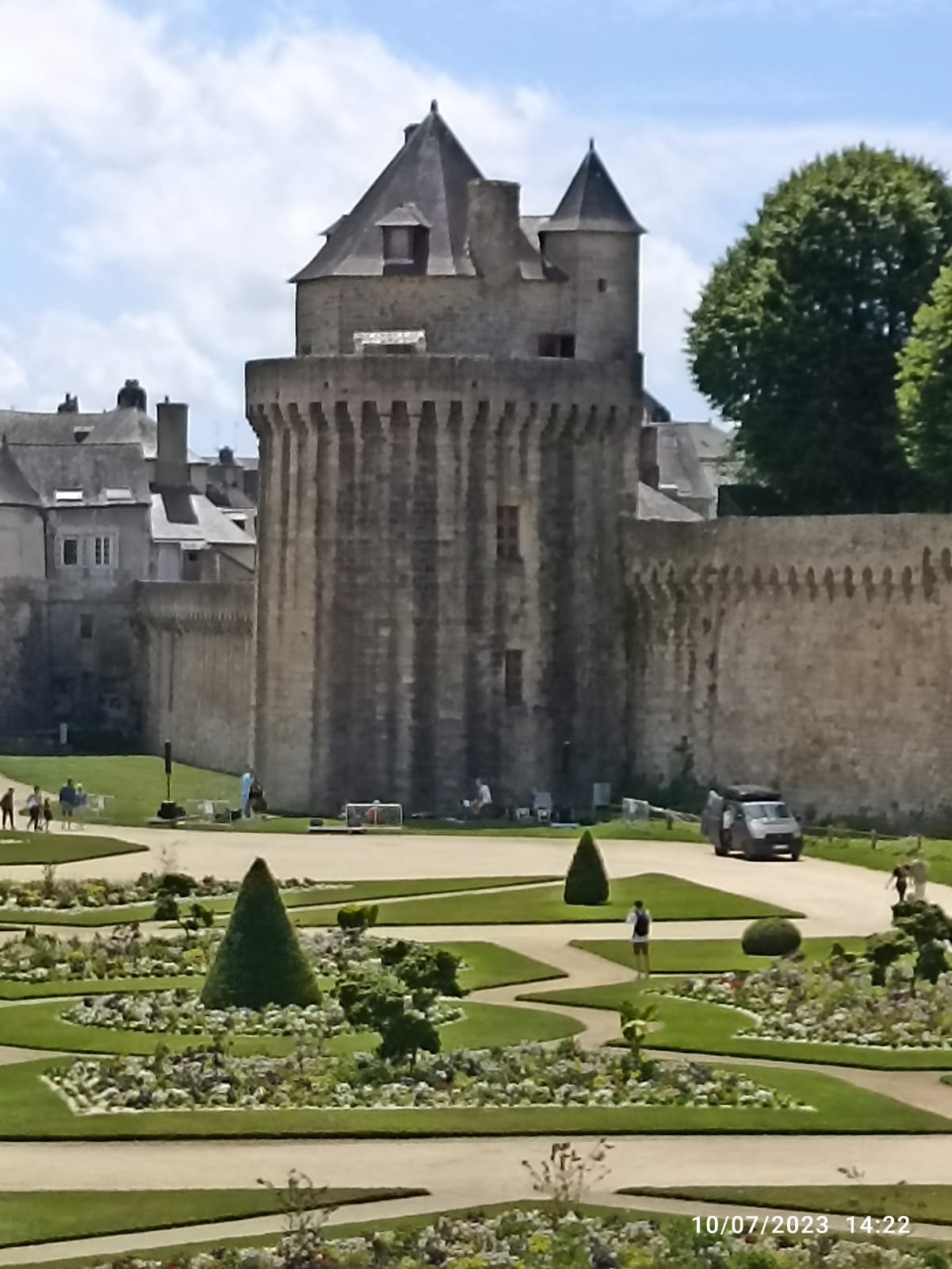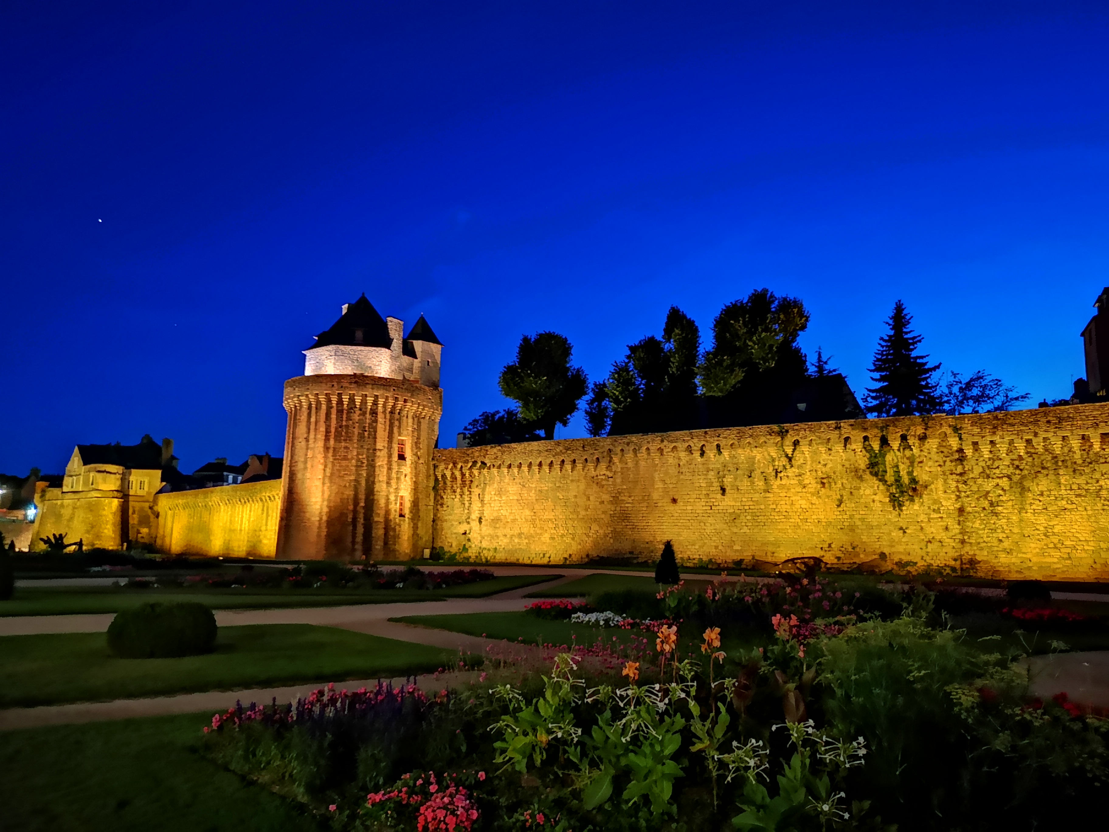 J ai assisté au feu d artifice du 15 aout tiré des remparts pour les fêtes d arvor. Il dure 17 mn. Il y a un beau jardin fleuri en bas. Les remparts du château et la tour sont bien restaurés. Et le soir avec k éclairage c est très beau. Les fêtes bretonnes sont magnifiques.