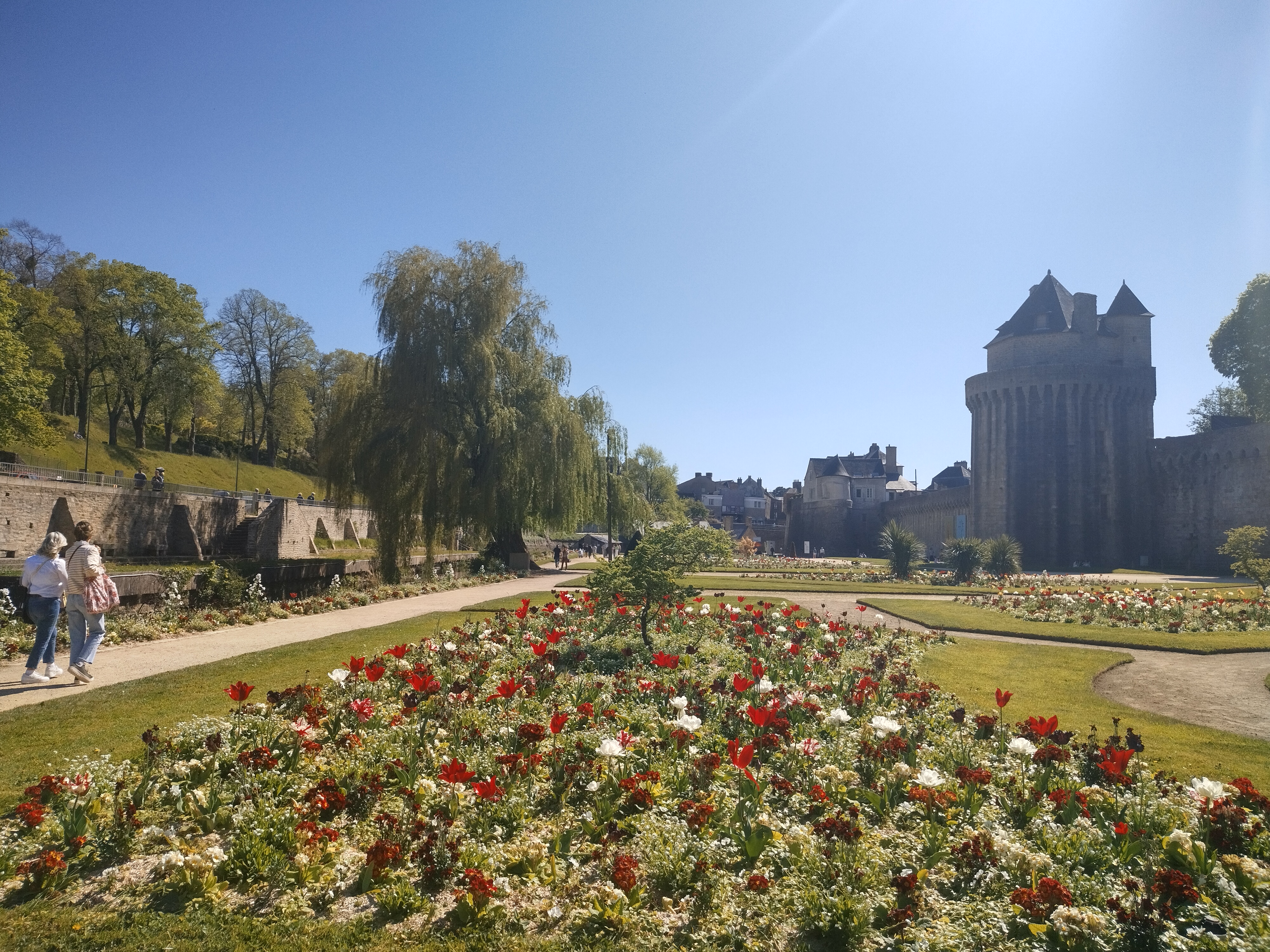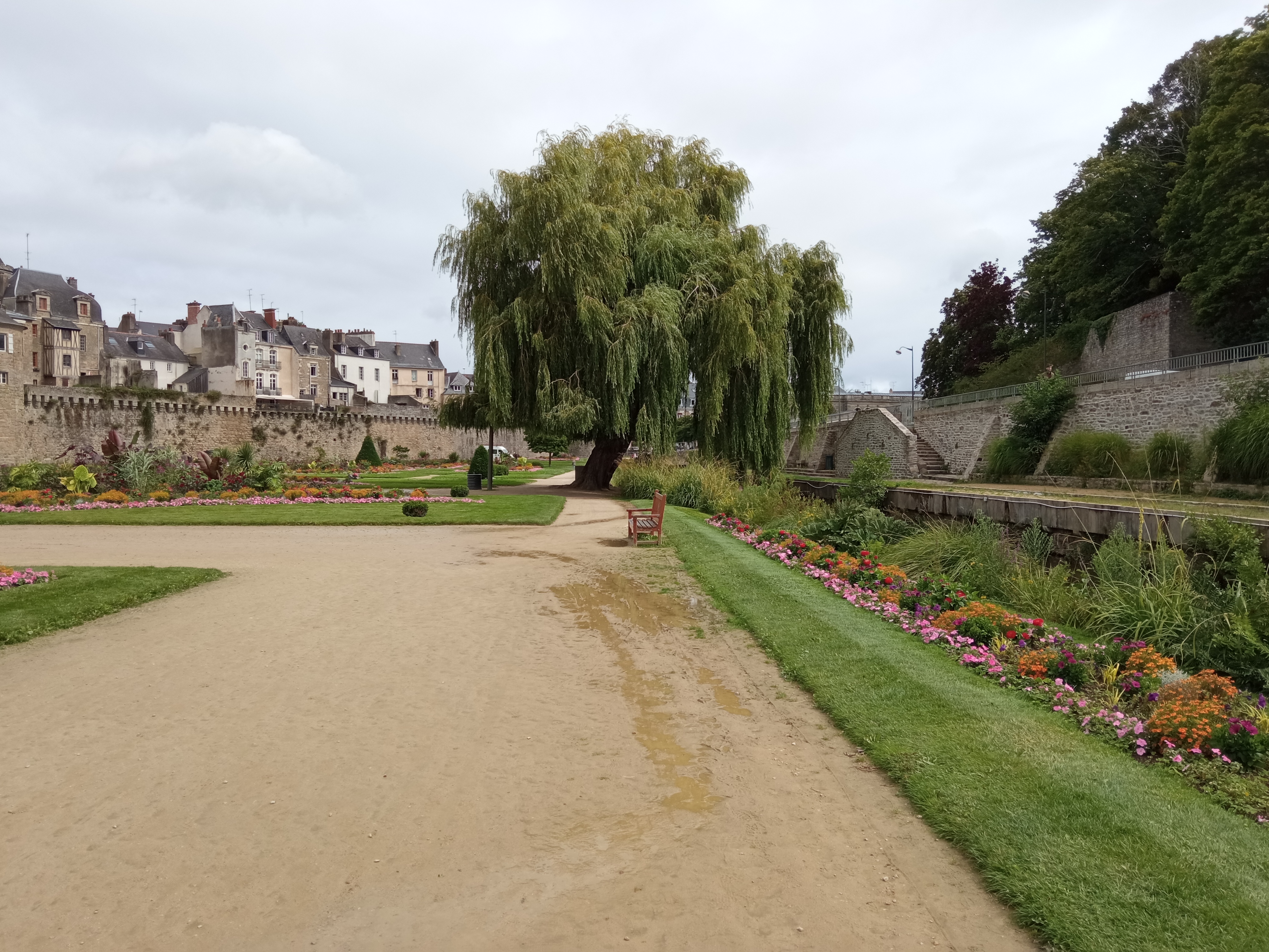 Remparts de Vannes, Jolie balade le long des remparts. Parc mis en valeur avec de splendides parterres fleuris et un saule splendide.